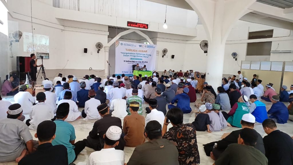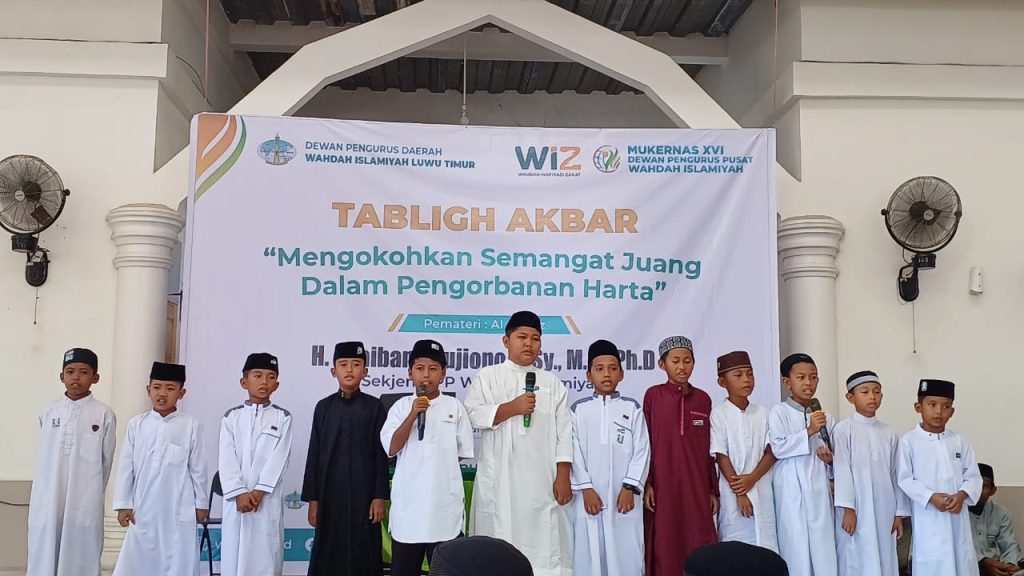 Wahdahlutim.or.id, Tomoni – Dewan Pengurus Daerah Wahdah Islamiyah Luwu Timur laksanakan Tablig Akbar dengan tema “Mengokohkan Semangat Juang dalam pengorbanan harta” yang di laksankan pada tanggal 19 September 2023 bertempat di masjid Nurul Iman Tomoni Kabupaten Luwu Timur, kegiatan ini digelar dalam rangka menyemarakkan dan mensukseskan Mukernas XVI Dewan Pengurus Pusat Wahdah Islamiyah. disela Acara peserta dihibur oleh penampilan siawa siswa SDIT Wahdah Islamiah 02 Tomoni yang menampilkan drama teater yang mengisahkan tentang pentingnya sedekah dan berjuang dengan harta di jalan Allah.